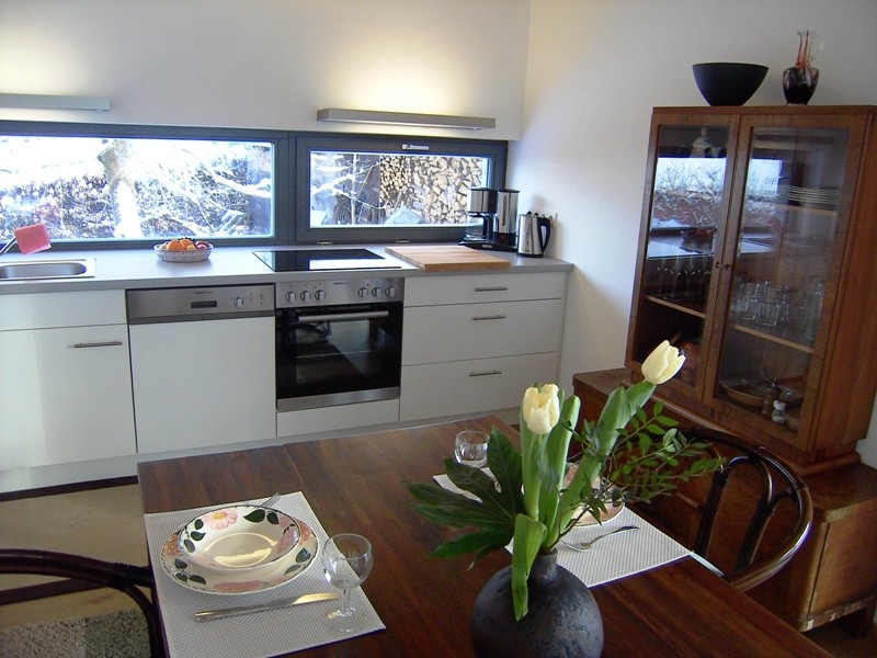 In der Designer-Küchenzeile mit großem Kühlschrank, Geschirrspüler und durchgehender Arbeitsplatte können Sie Ihre Kochkünste demonstrieren oder aber einfach auch nur den Kaffee zubereiten, den Sie dann in der Sonne auf der Terasse geniessen können.